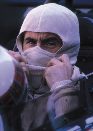 From The Speed Merchants. If Jackie Stewart’s eyes are not recognizable, the Tartan stripe on his helmet is.