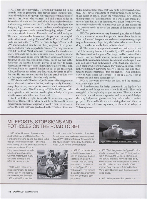 KL: The book dealt with the creation of the 356, and it tried to understand more fully the forces and personalities that caused it to look the way it did. The reason for that, it's such an iconic car in determining the formsprache, as the Germans like to say, of all subsequent Porsches. That was really my mission in doing that book. It's the first book I've done about Porsche where I really had a chance to bring into play the competition, and the rivals to the Porsche, in its career. That was a pretty significant part of that project, to show the places where Porsche was ahead of the competition, behind the competition, how it related to its contemporaries in what it was achieving.