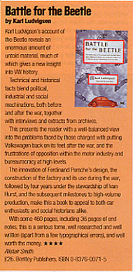 This presents the reader with a well-balanced view into the problems faced by those charged with putting Volkswagen back on its feet after the war, and the frustrations of opposition within the motor industry and bureaurocracy at high levels.